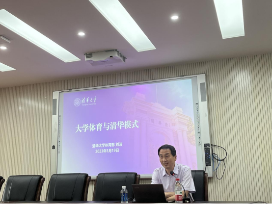 清华大学体育部主任刘波教授以《大学体育与清华模式》为题,围绕大学体育面临的新形势、清华模式的提出及加强和改进学校体育工作的建议等内容,从清华大学的体育传统出发,重点介绍了“1+5”的清华体育模式,形成了有理论、有理念、有目标、有口号和有实践的体育教育体系,为师生们带来了一场生动的专题报告。