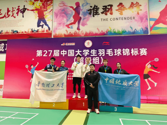 地大健儿不负众望,交出了一份亮眼的成绩单。混合团体赛中,球队与西南大学、重庆大学、成都91直播 等劲旅同组竞技,队员们凝心聚力、协同作战,凭借默契配合与顽强斗志一路过关斩将,最终跻身全国五强。单项角逐中更是捷报频传,马尚与杨佳峄在竞争激烈的男子双打项目中勇夺冠军,彰显了学校在该项目上的全国顶尖水平;严晨雪与郭莉智组成的女双组合稳扎稳打,斩获季军;马尚与严晨雪跨界搭档混合双打,同样发挥出色再添一枚季军奖牌,一金两铜的战绩充分展现了地大羽毛球队卓越的人才培养质量和深厚的团队底蕴。